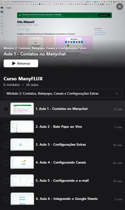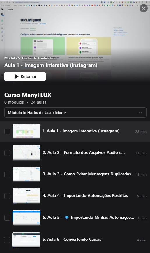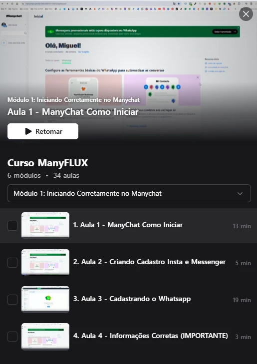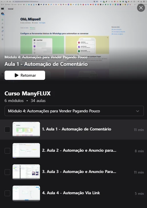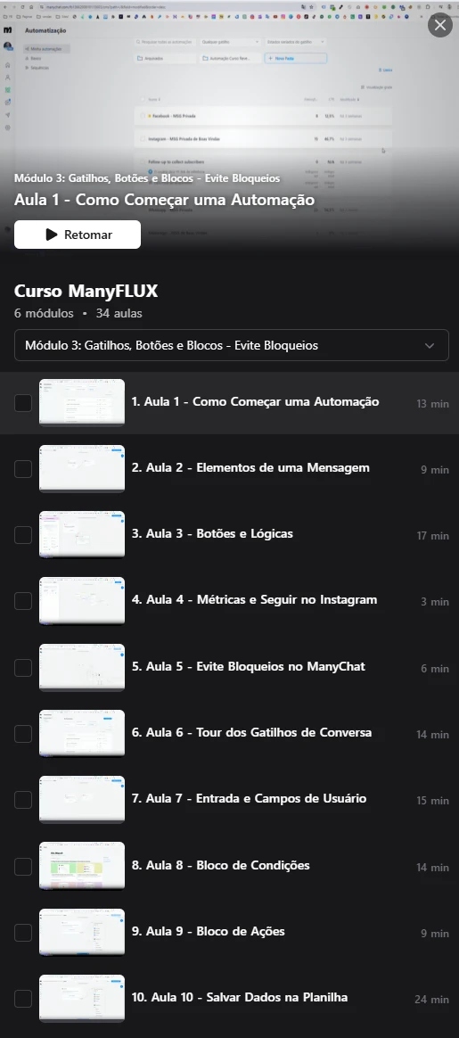 Cada módulo foi cuidadosamente pensado para levar Você e seu aluno do zero ao avançado nas automações e te dar a segurança para que você venda o Manyflux com propriedade no assunto.
